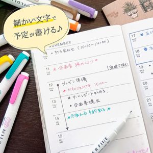 具有相配色調的顏色陣容,即使使用多個顏色,也不會感到混亂和刺眼,用同樣的色調整理筆記,使其看起來也會變得整潔可愛。當在學習筆記或生活日誌時使用,它是一枝可以幫助您保持積極態度的螢光筆。